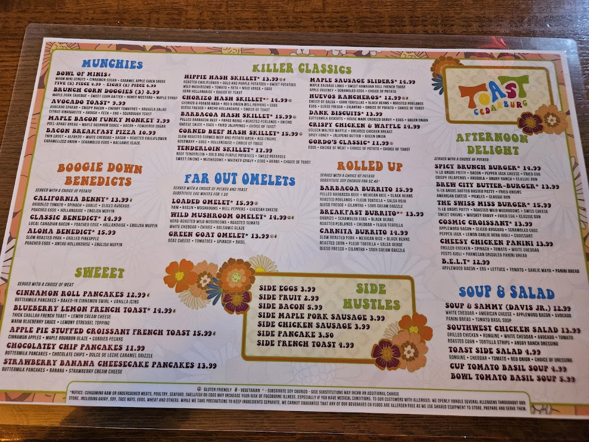 If you're in Cedarburg, the Toast Cedarburg Menu offers a delightful range of flavors that are sure to satisfy any craving. Located at 1302 Washington Ave, this cozy spot is perfect for enjoying delicious, thoughtfully crafted dishes. Whether you're looking for a hearty breakfast to start your day or a savory dish for lunch, Toast Cedarburg has something for everyone. Their menu features fresh, local ingredients that come together to create comforting, mouthwatering meals. You’ll find everything from perfectly toasted sandwiches to creative takes on classic comfort food, all served with a side of friendly hospitality. It’s the perfect place to gather with friends or enjoy a quiet meal on your own while savoring every bite.